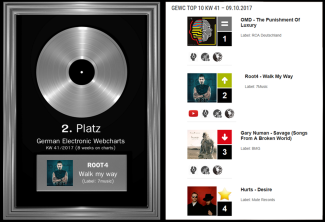 Nach der Veröffentlichung am 1.9.2017 stieg das Album WALK MY WAY in die German Electronic Web Charts ein und hielt sich dort 8 Wochen lang in den Top Ten (Alben dürfen maximal 8 Wochen in den Charts vertreten sein).