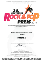 Am 08.12.2018 trat ROOT4 beim Live-Finale des DEUTSCHER ROCK & POP PREIS 2018 in der Siegerlandhalle auf und wurde mit dem Preis Beste Electropop Band 2018 ausgezeichnet.